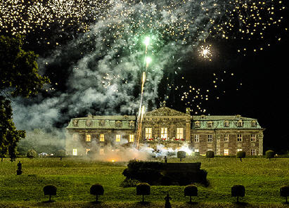 Jetzt darf ich Sie vorweg zum Träumen verführen. Erlauben Sie es mir – ich bitte Sie ganz ehrfurchtsvoll darum! Unser Ball wird zu Recht einmalig schön, reich an Programm, zwischen den Tänzen auf der großen Terrasse und im großen, herrlichen Festsaal, begleitet von unserem guten Tanzmeister mit dem kleinen legendären Orchester „Les Matelots“, zwischen den Kutschfahrten durch den riesigen Park, viel Kuchen, den abendlichen & nächtlichen Buffets und nicht zuletzt dem grandiosen Höhenfeuerwerk über das Schloss. Fühlen Sie sich dadurch wie in das Versailler Trianon versetzt! An gleicher Stelle darf ich Ihnen gegenüber den leidenschaftlichen Ausdruck von unserer Gräfin Cosel wiedergeben, dass Ihnen für Ihre Teilnahme am sommerlichen Ball unverwechselbare Güte und innigste Dankbarkeit von ihr zuteil werden!