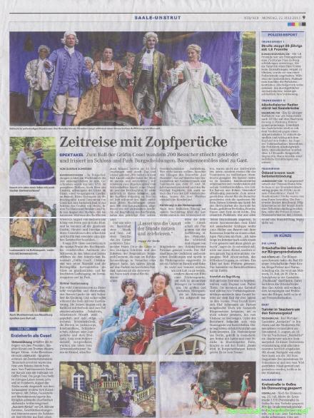 mit aufrichtiger Genugtuung habe ich die Ehre, von unserer anbetungswürdigen Gräfin Cosel die Ordre mit vollster Beflissenheit in Empfang genommen zu haben, Ihnen die Depesche zukommen zu lassen: Seien Sie im Namen der Gräfin Cosel auf ihren sommerlichen Ball auf Schloss Burgscheidungen bei Naumburg ganz herzlich willkommen!